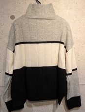 洗練された印象を与える3カラーニットが登場です!グレー、オフホワイト、ブラックの基本カラーを使用し、身頃はワイドタイプでハイネックデザインになっています。合わせやすく、カジュアルからきれいめまで幅広いスタイルにマッチする感じのいいニットです。