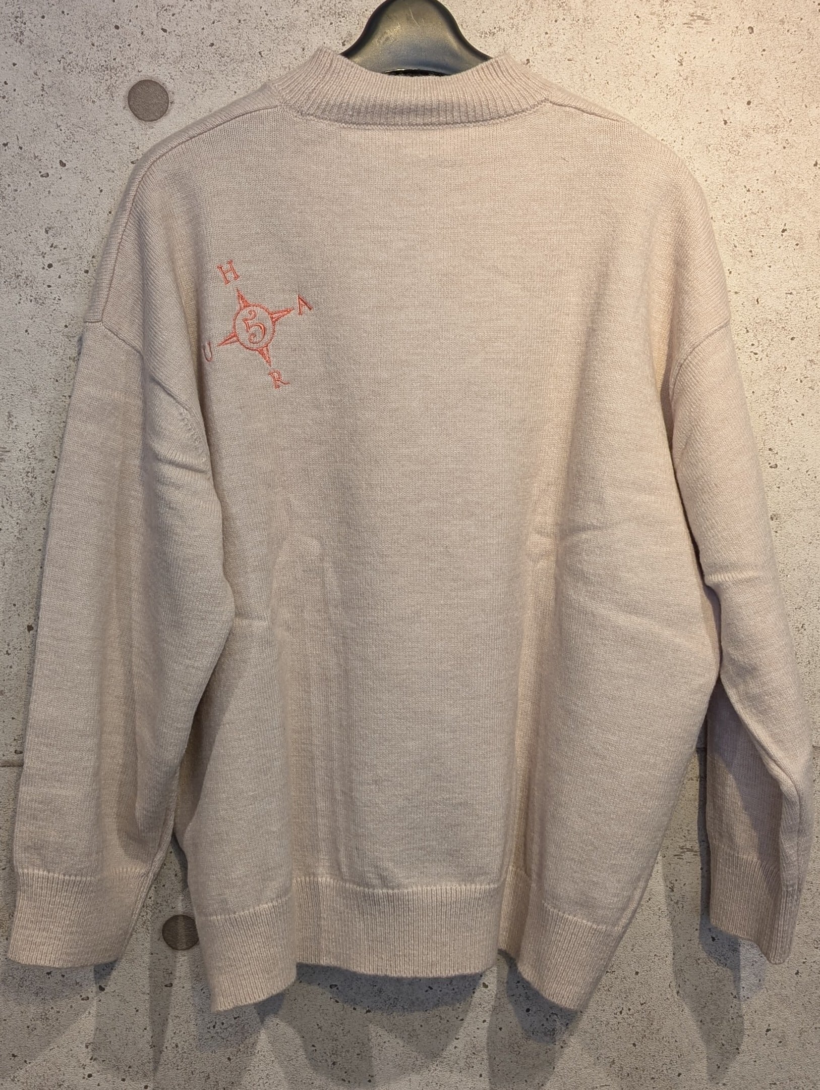 クルーネックニット アイボリー 1点物の登場です!あっさりとした感じで首の詰まったデザインです。ザクッと着るだけでスタイルが完成するお洒落アイテム、トレーナーのようなリラックス感があり、デイリーでの着用にもぴったりです。シンプルながらも、洗練された雰囲気を演出してくれます!